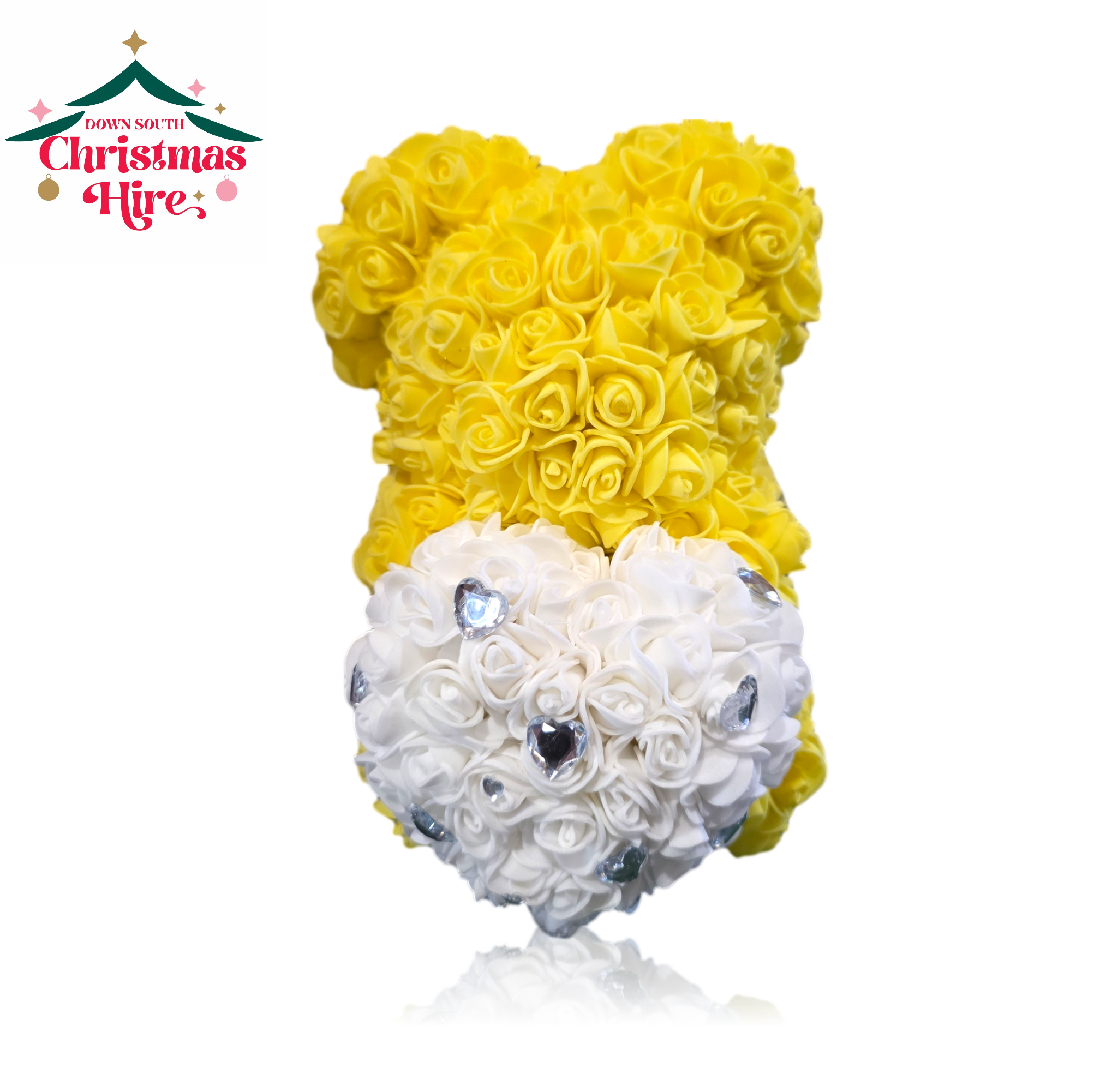 Brighten someone’s day with this cheerful and beautiful Yellow and White Rose Bear!