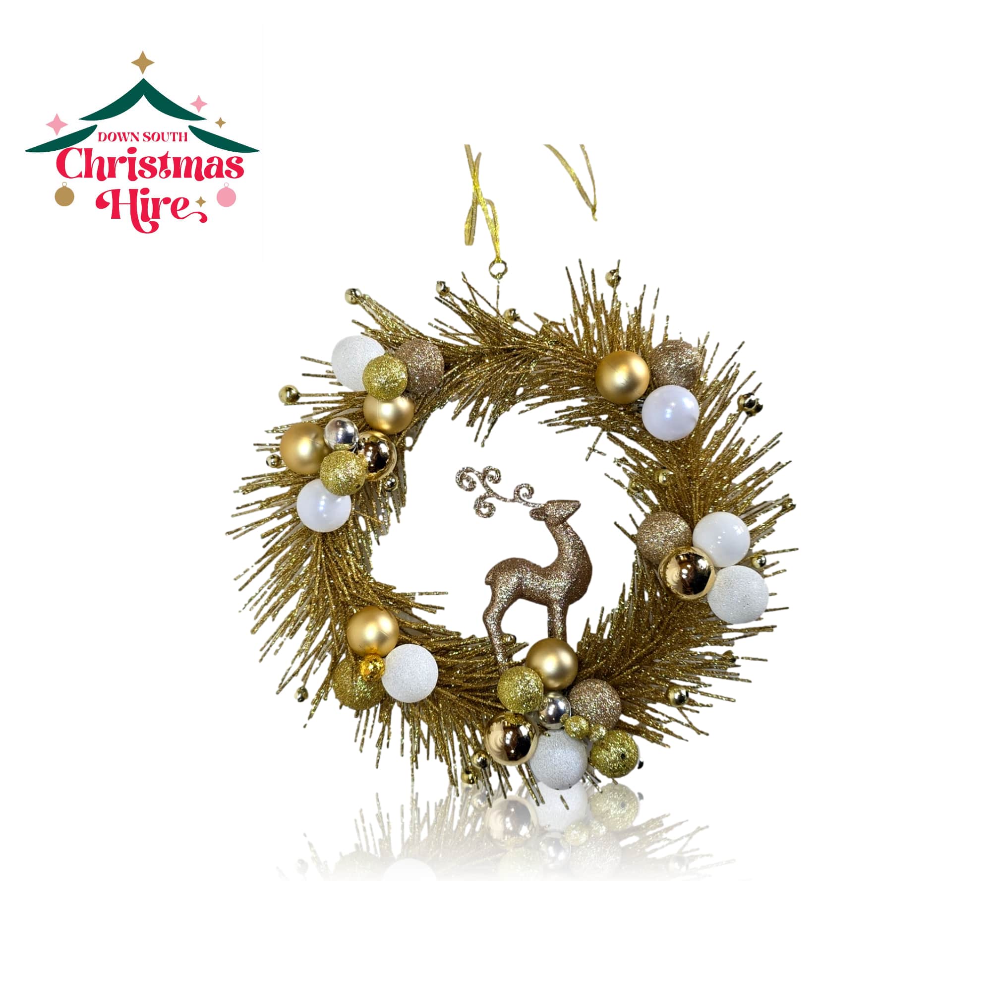 Make a brilliant statement with this dazzling Luxurious Gold Reindeer Wreath.