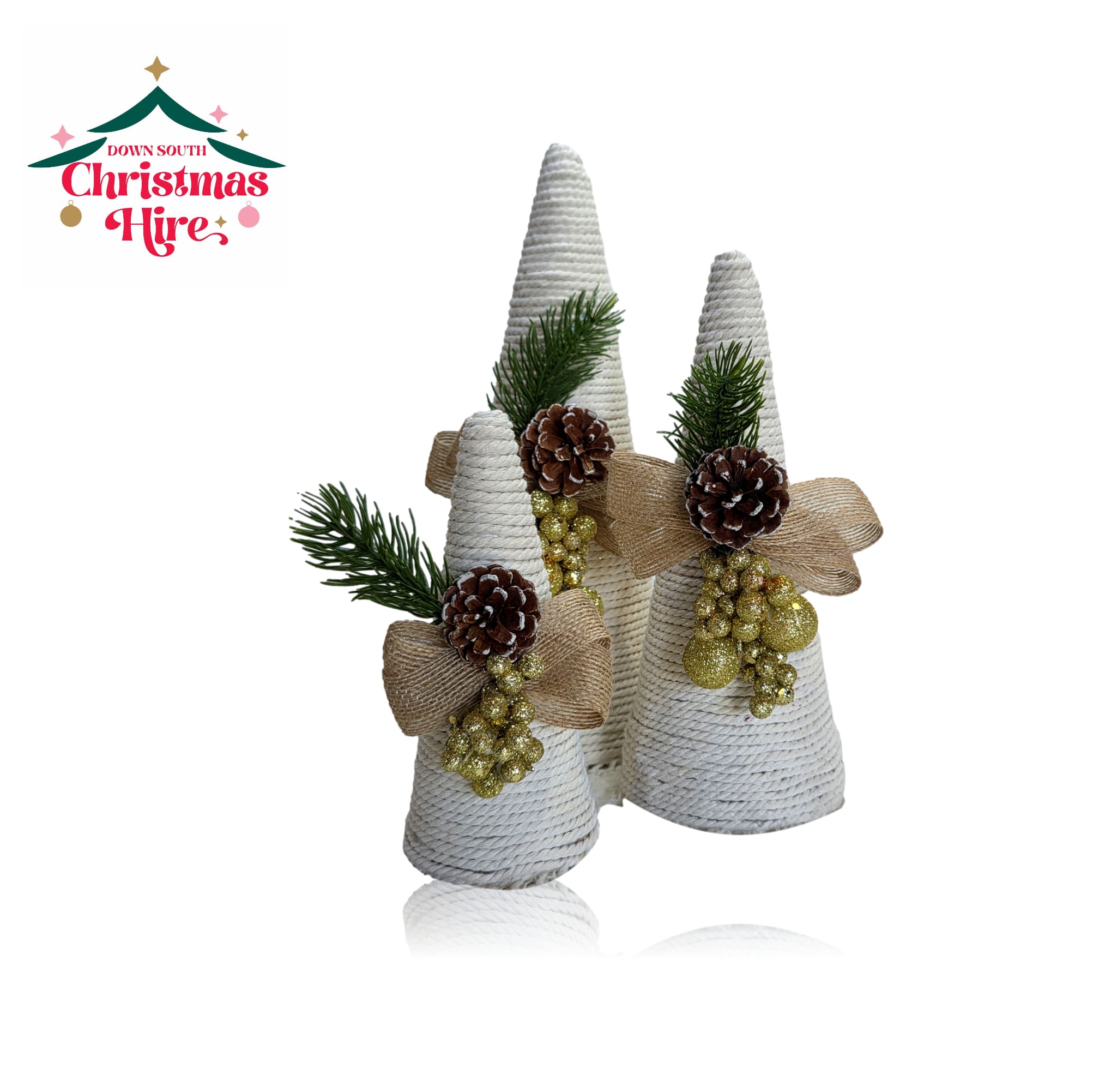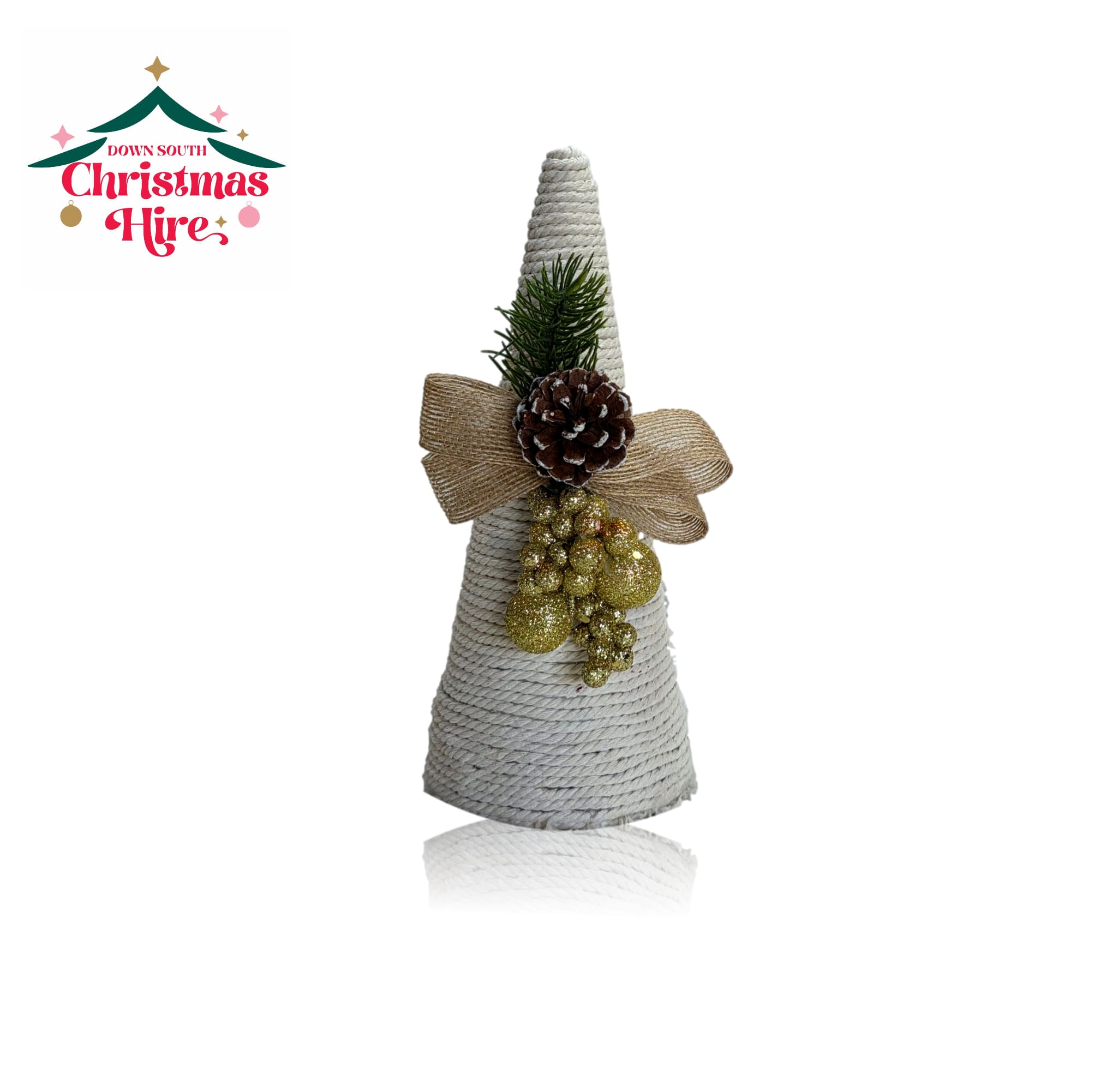 Embrace a cozy, rustic aesthetic this holiday season with our charming White Macrame Rope Cone Christmas Tree. This unique decorative tree is meticulously wrapped in textured white rope, creating a warm and inviting look.