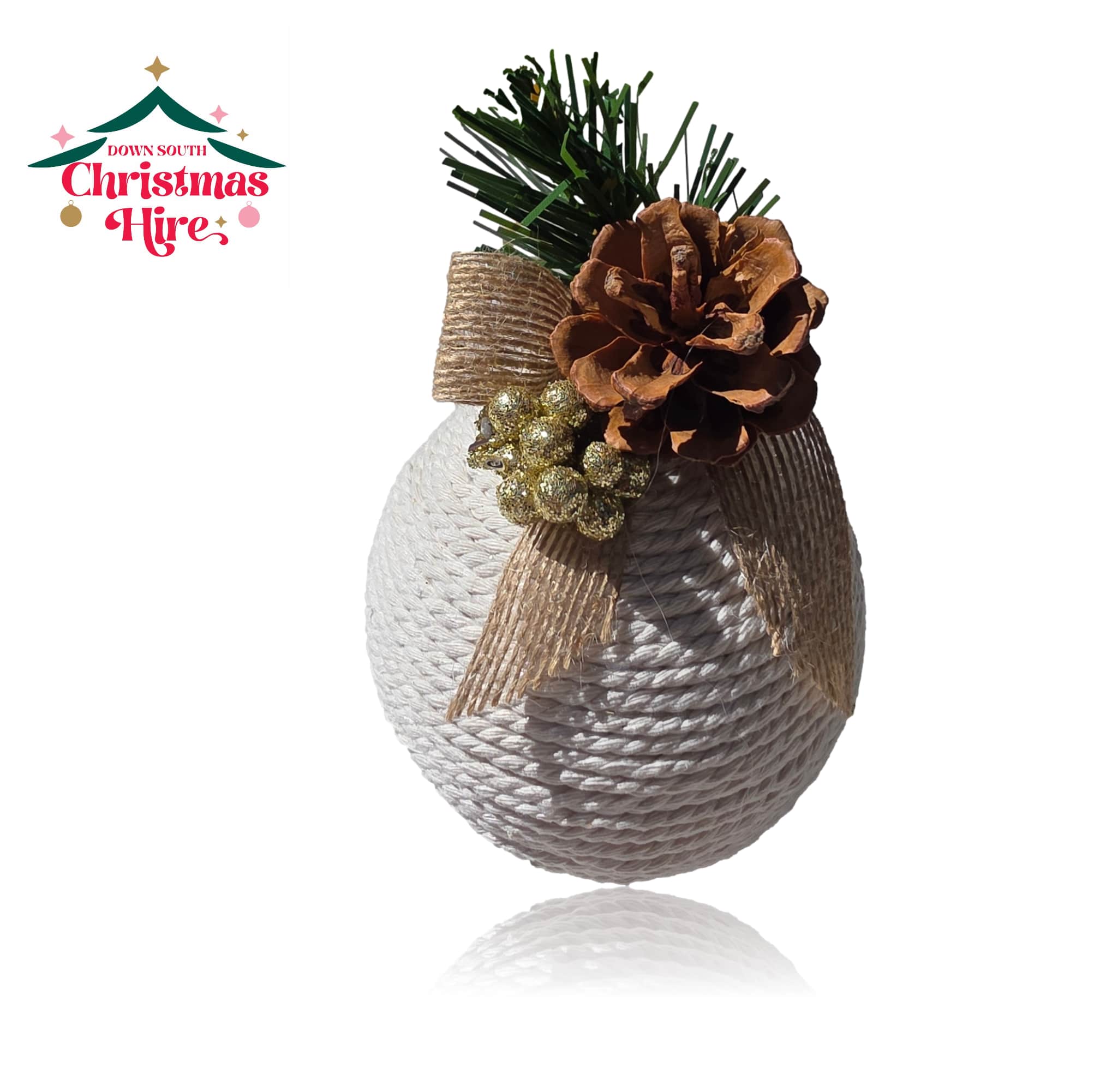 Add a touch of natural, farmhouse charm to your Christmas tree with this unique Rustic White Rope & Pinecone Bauble.