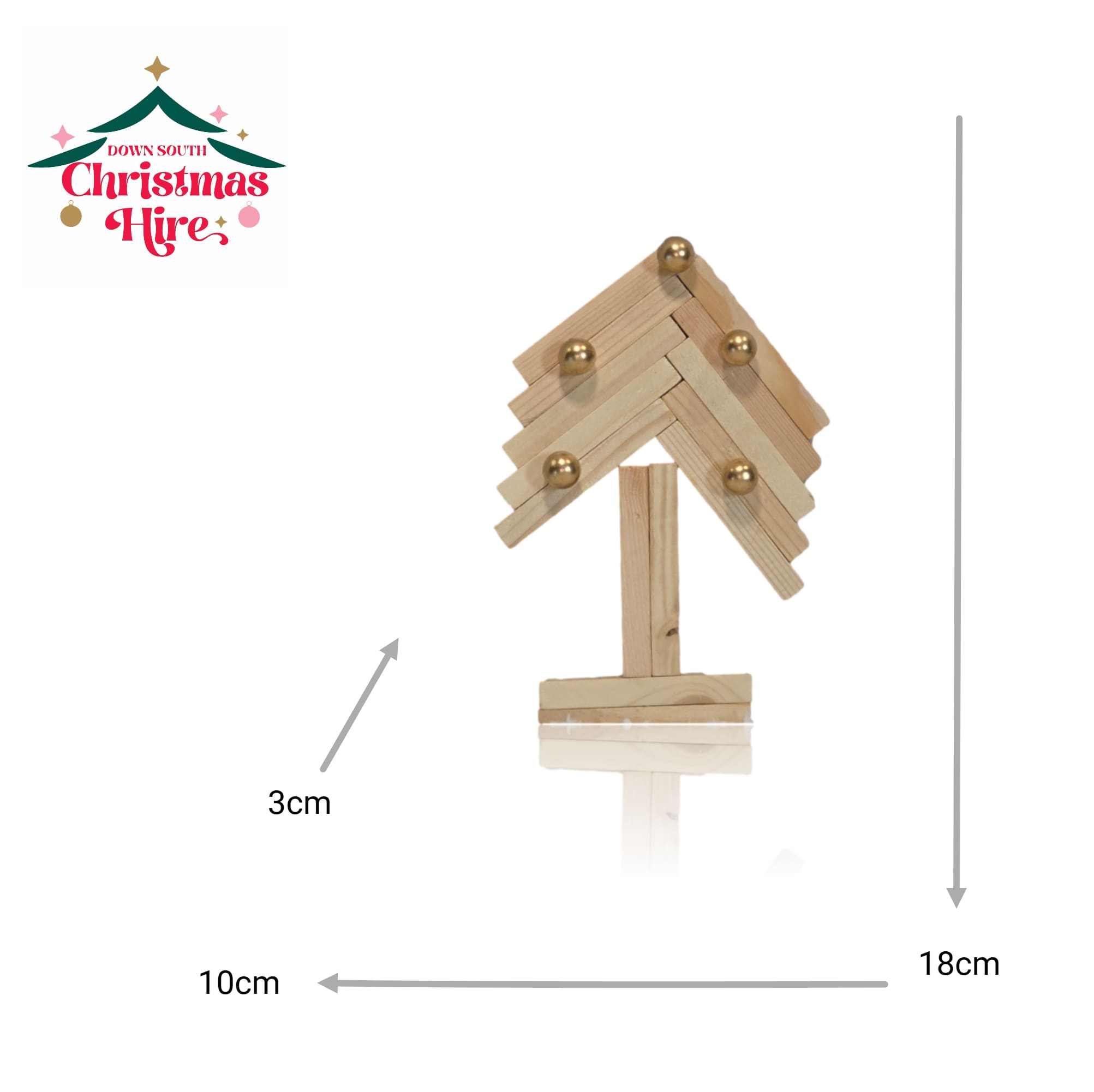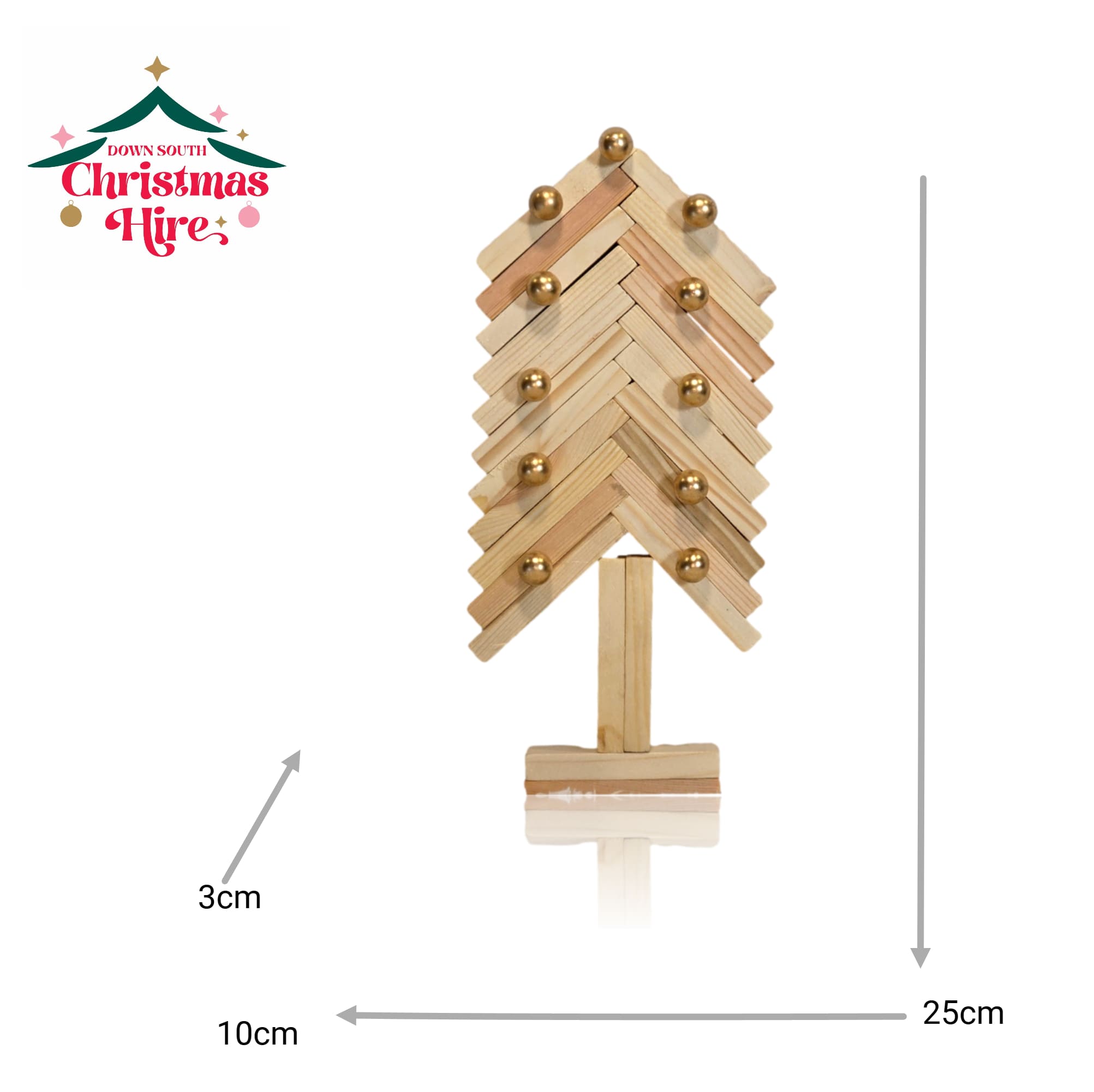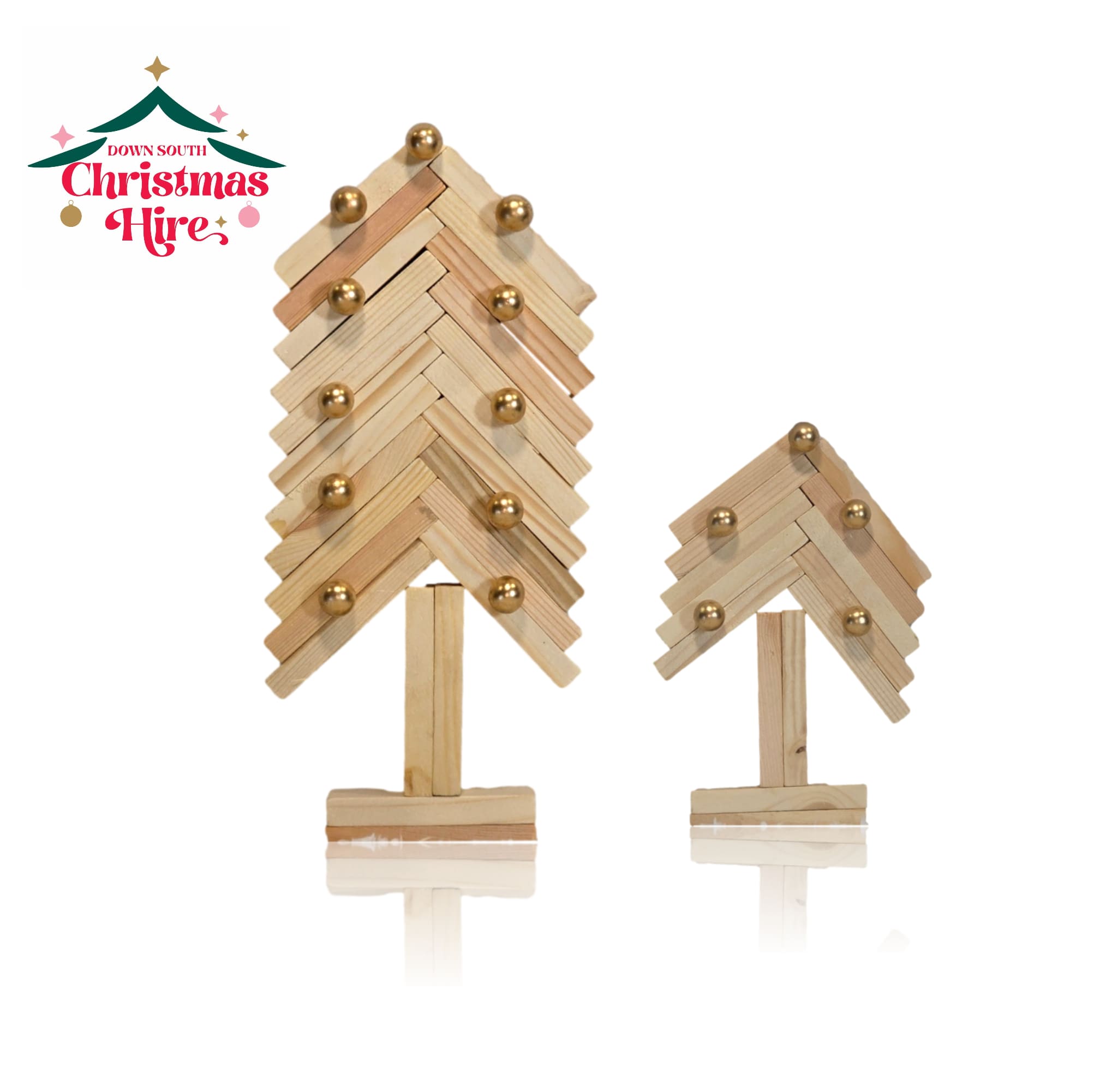 Bring a touch of minimalist, rustic charm to your holiday decor with this unique Wooden Block Christmas Tree. Crafted from recycled wooded blocks arranged in a modern herringbone pattern, this piece offers a fresh take on the classic Christmas tree. It’s elegantly embellished with small, shimmering gold baubles that add a festive sparkle.